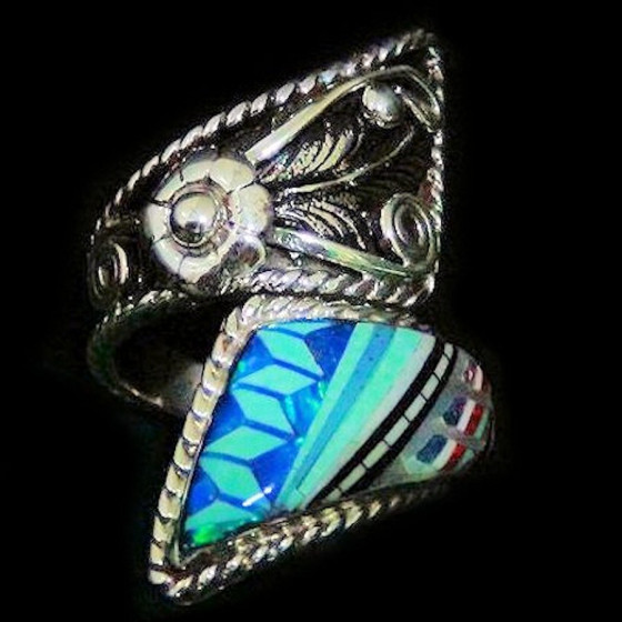 Bague en argent 925 pour Femme sertie de pierres multicolores et d`opale