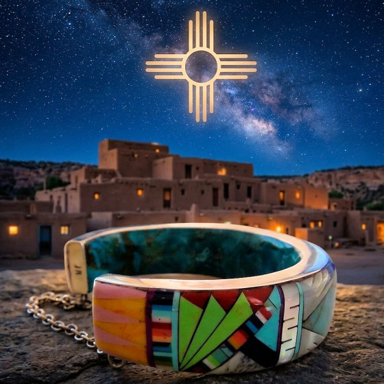 Les bracelets Zuni en mosaïque de turquoise et argent 925 sont des chefs-d'œuvre de l'artisanat amérindien, célèbres pour la technique de la marqueterie ou inlay. Contrairement au style Navajo qui utilise de grosses pierres, les artisans Zuni taillent minutieusement chaque fragment de pierre pour qu'ils s'ajustent parfaitement dans des montures en argent massif.