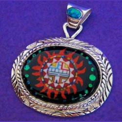 Pendente in Argento 925 con un mosaico di pietre semipreziose – sugilite, turchese, madreperla, corallo e opale – che rappresenta un simbolo Navajo.