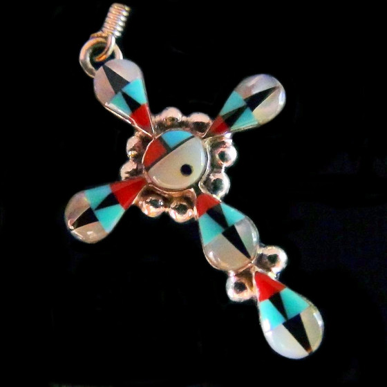Orecchini in Argento 925 con mosaico di pietre che rappresentano il dio sole Zuni.