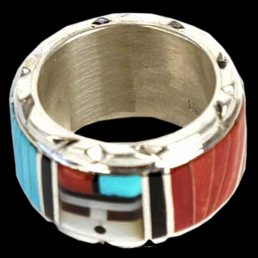 Anello in argento sterling/925 con turchese, corallo e madreperla.