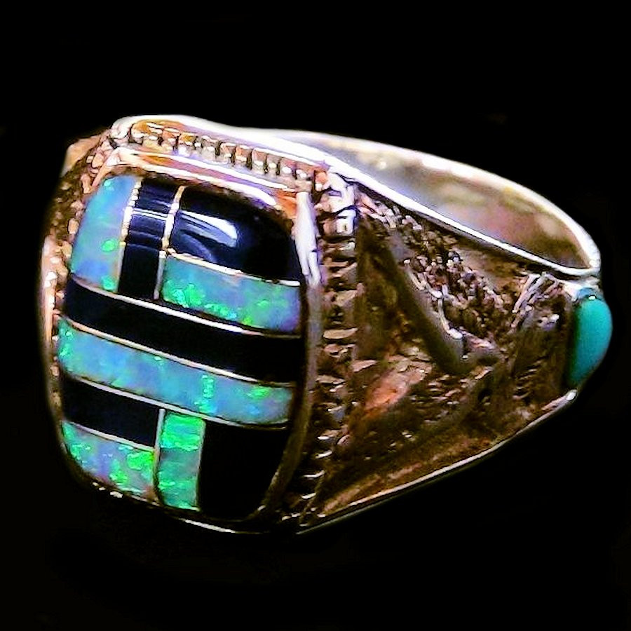 Indian navajo symbol design Ring for woman or man made with Sterling Silver. On both sides, there is a flying eagle with a small turquoise inlaid.