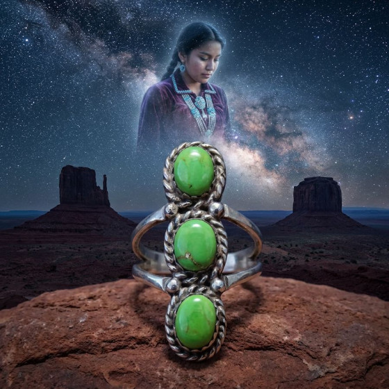 Anello Donna Navajo 3 Cabochon, Colore A Scelta