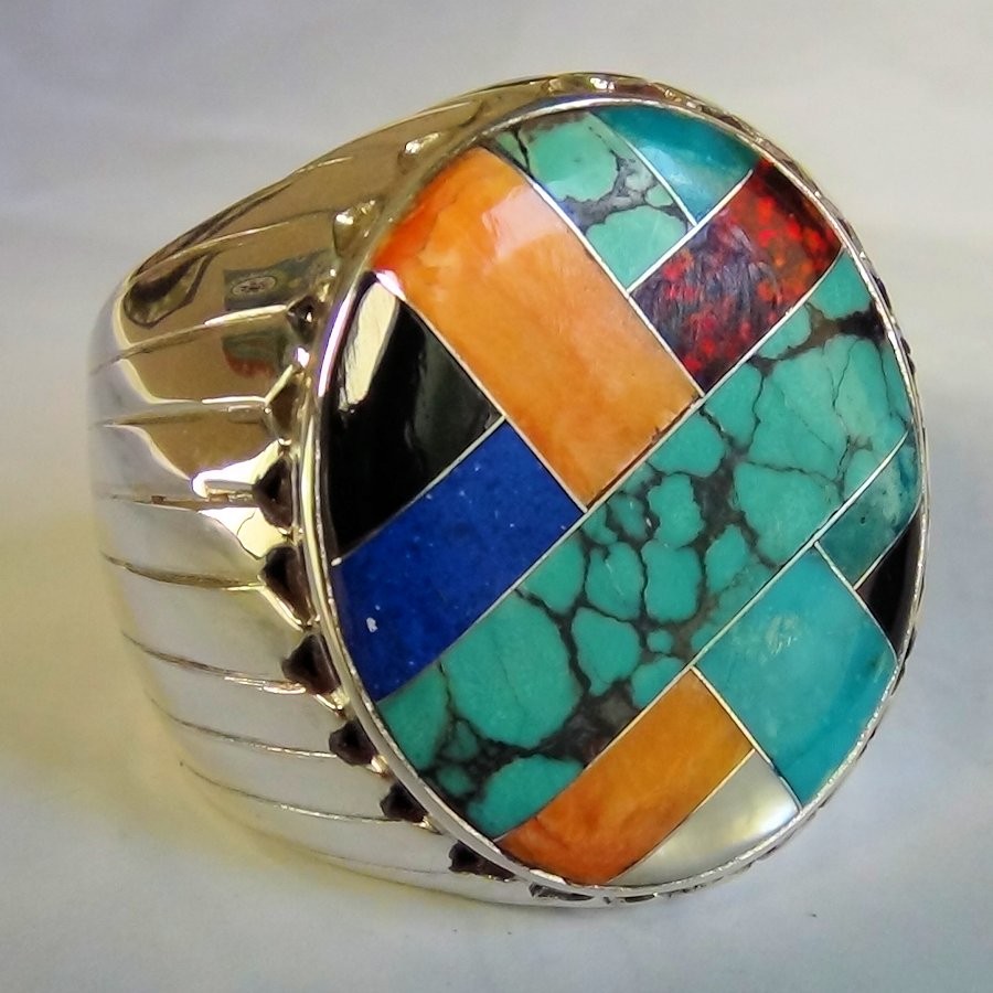 Anello in argento sterling/925 con pietre semipreziose multicolori.