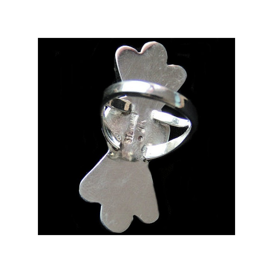 Anello in argento sterling/925 con pietre semipreziose disposte a mosaico e rappresentanti un simbolo dei nativi americani, il dio del sole.
