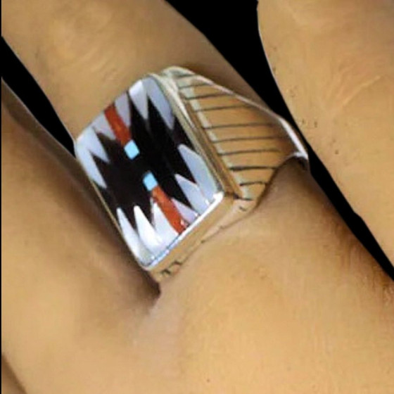 Anello in argento sterling/925 che rappresenta un simbolo Navajo.