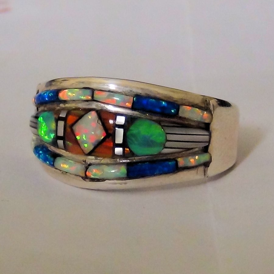 Anello in argento 925 con opali di diversi colori -