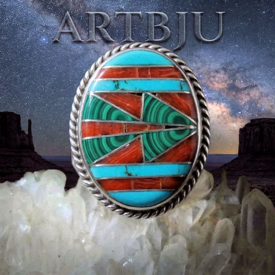 Anello in argento 925, con turchese, madreperla e conchiglia nera incastonati.