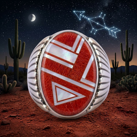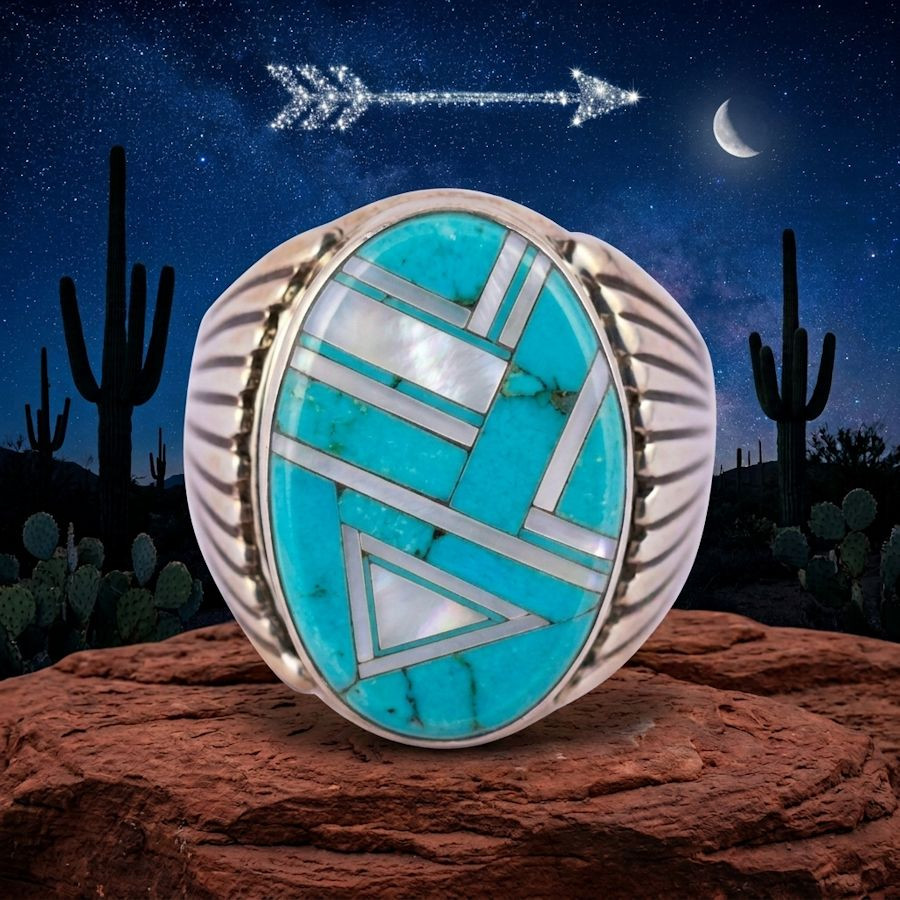 Anello ovale con intarsio a punta di freccia, colori a scelta, anello da uomo