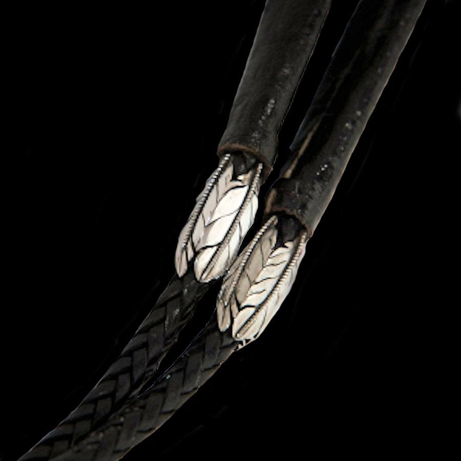 Anelli in argento 925 progettati per ornare il cordino di cuoio della cravatta di cuoio.