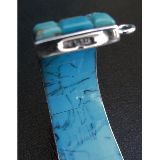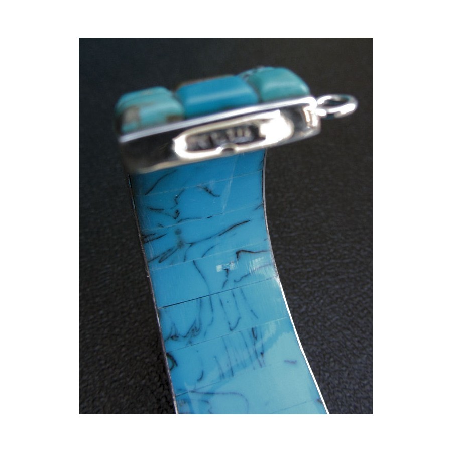 Bracciale in argento sterling/925, ornato di turchese (Arizona), all'esterno e all'interno. Catena di sicurezza.