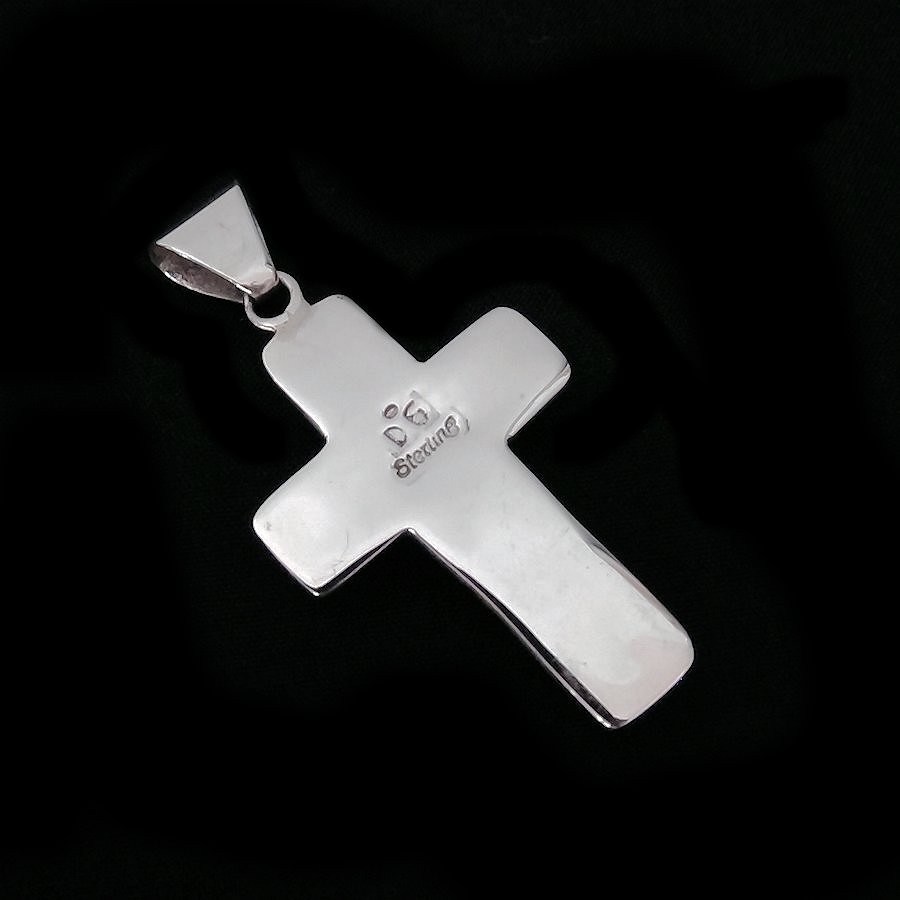 Questo ciondolo in argento sterling/925 è incastonato con dozzine di piccole pietre tagliate e pazientemente assemblate.