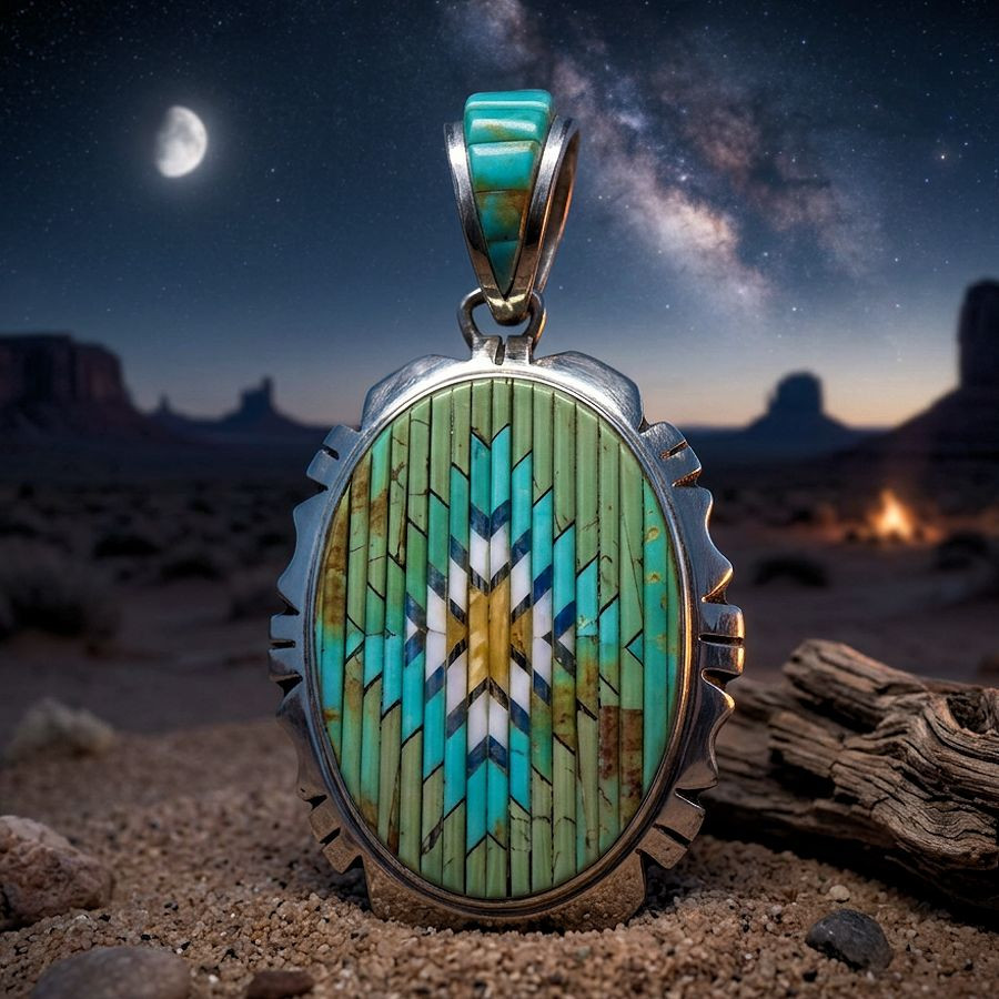 Immergetevi nel mondo mistico del selvaggio West americano con questo eccezionale gioiello. Unendo l'artigianato tradizionale all'eleganza moderna, questo pendente è un pezzo forte per qualsiasi collezione di gioielli etnici.