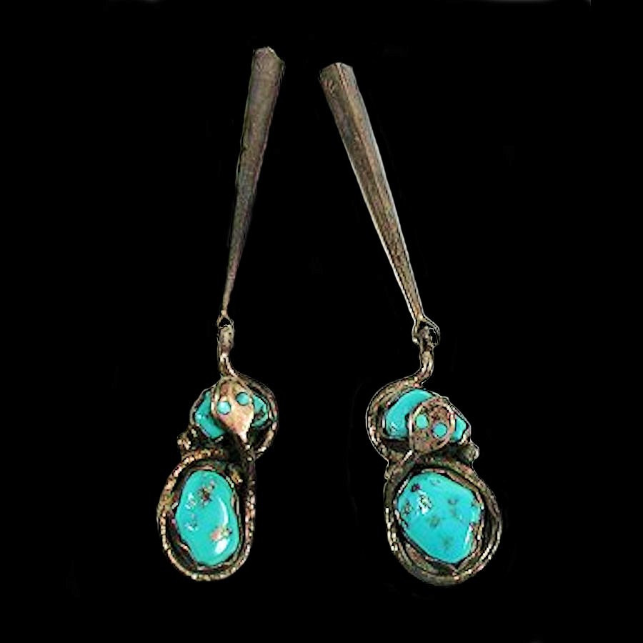 Coppia di terminali per cravatta messicani in argento 925 con due turchesi.