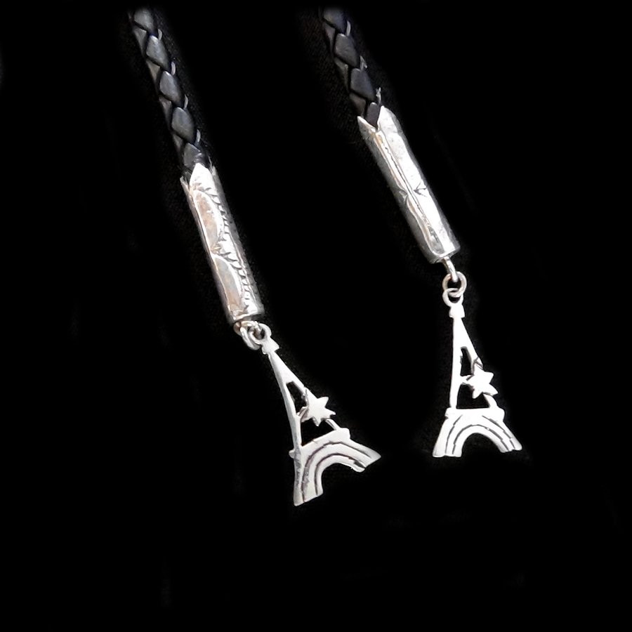 Coppia di estremità per cravatta a forma di Torre Eiffel in argento