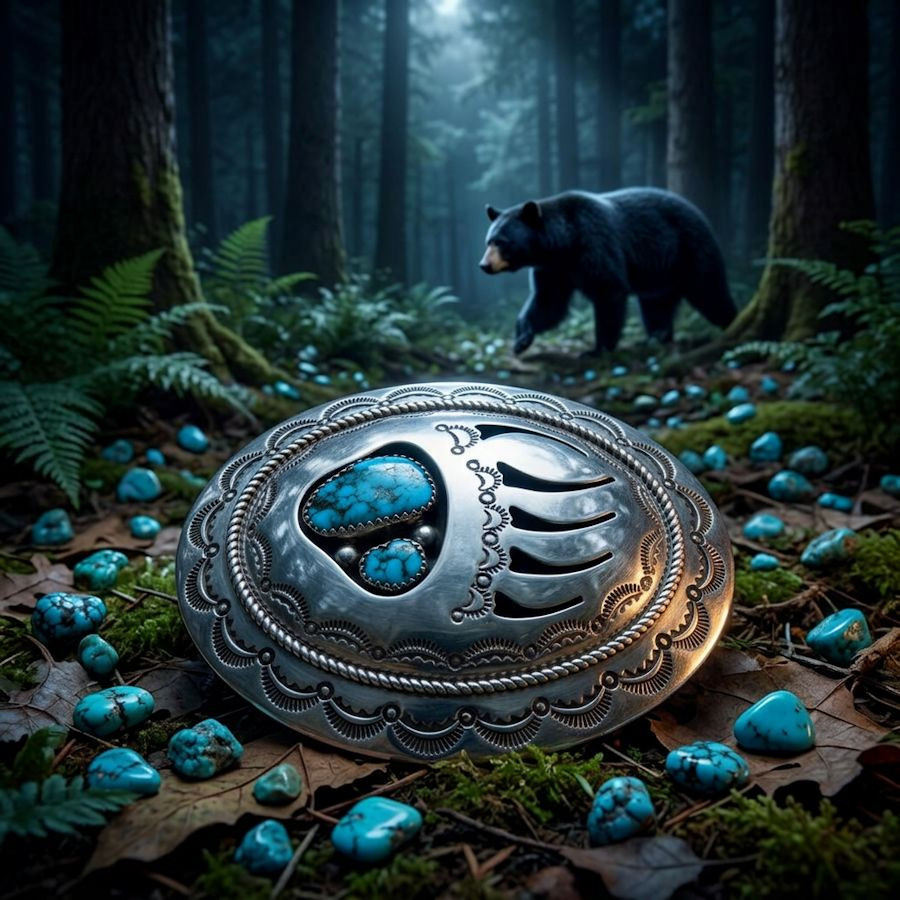 Valorizza il tuo look con questo pezzo unico, realizzato a mano, che unisce la robustezza dell'argento sterling alla bellezza senza tempo del turchese. Questa fibbia per cintura presenta un'impronta di zampa d'orso finemente cesellata, un potente simbolo dei nativi americani di forza, coraggio e connessione con la natura. Incorniciata da autentiche pietre di turchese nelle tonalità del blu e del verde, questa fibbia aggiunge un autentico tocco western o bohémien chic al tuo stile.