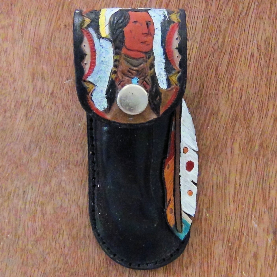 Fodero in pelle goffrata e dipinta a mano per coltello Modello 1 dal nostro sito.