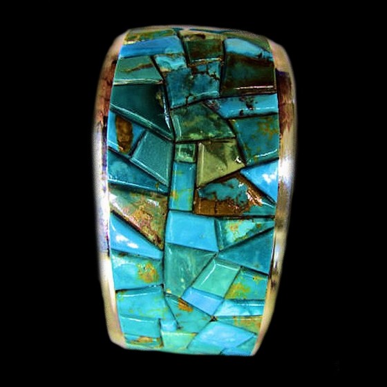 Il est orné d'un ours, de cabochons de turquoise et de cabochons de corail.