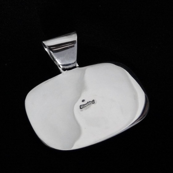 Pendentif en Argent Sterling/925, serti de pierres semi précieuses comme le spondylus, le jeais noir et l'opale.Dimensions