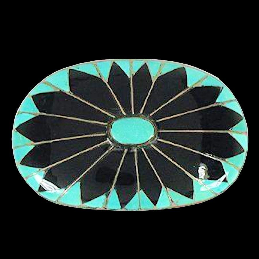 Incarnez l'esprit du sud-ouest américain avec cette superbe boucle de ceinture Navajo, véritable œuvre d'artisanat. Réalisée en argent massif 925 (Sterling Silver), cette pièce met à l'honneur le motif "Black Sun" (Soleil Noir), méticuleusement ciselé à la main par des artistes amérindiens.