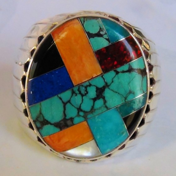 Bague en Argent Sterling/925 sertie de pierres semi-précieuses multicolores.