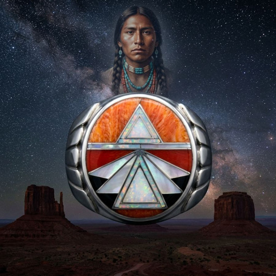 Bague Flèche Turquoise Brune et Opale en Argent pour Homme