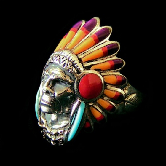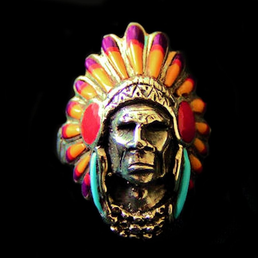 Personnalisez votre bijou en choisissant les couleurs de cette bague Chef Indien en Argent Sterling !