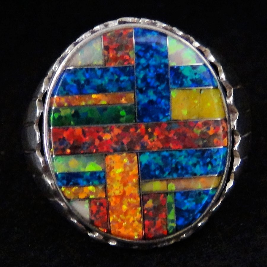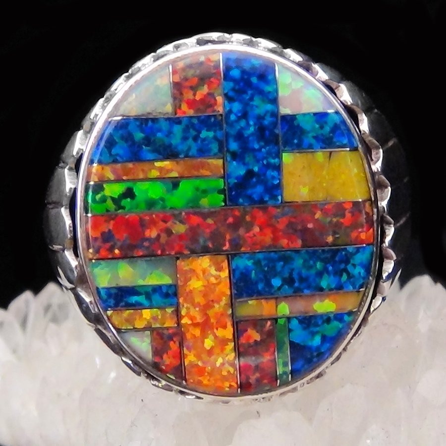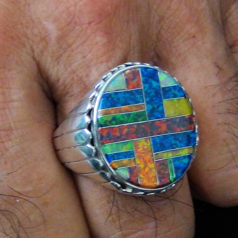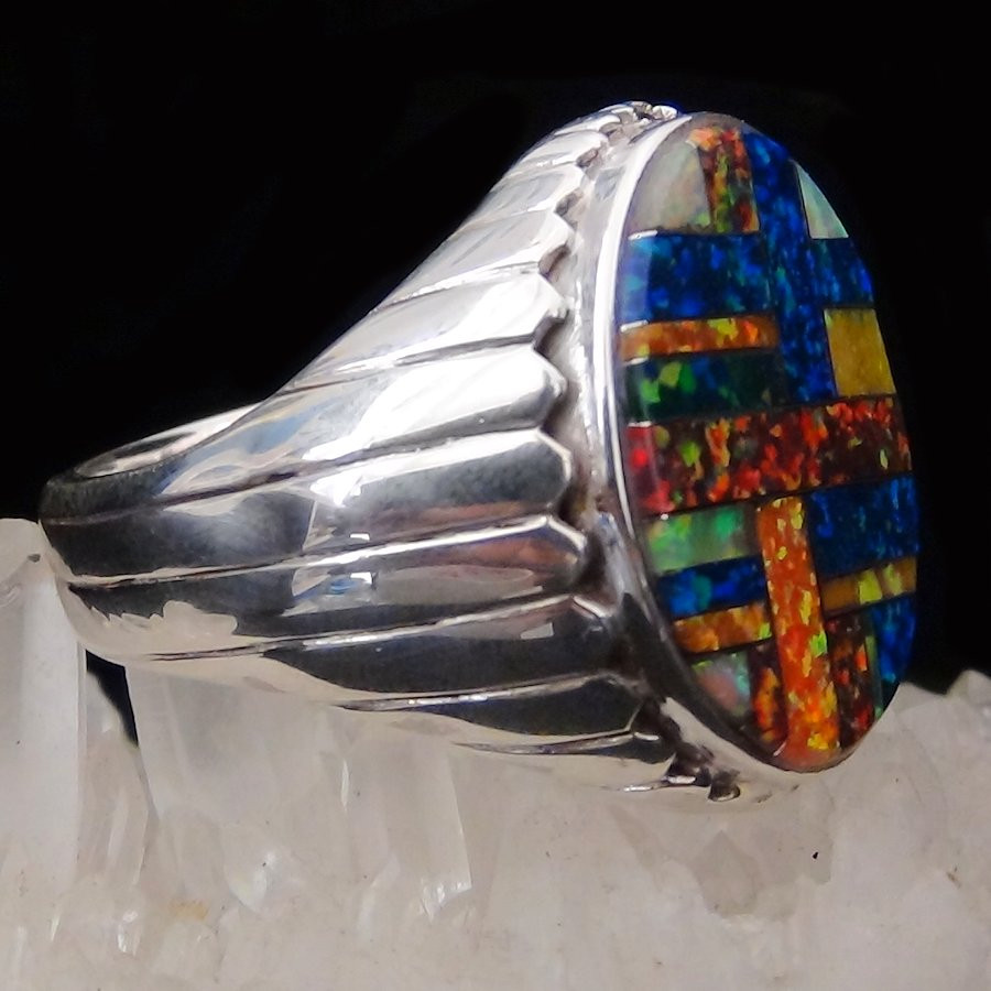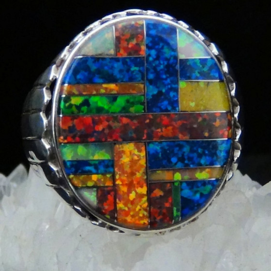Bague en Argent Sterling/925 ornée de lab opal de différentes couleurs.