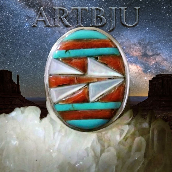 Bague en Argent 925, sertie de turquoise, de nacre et de coquillage noir.