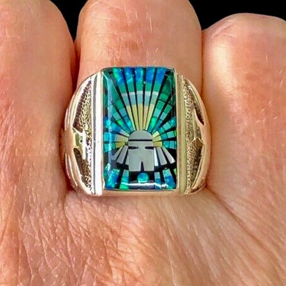 Bague en Argent Sterling 925 sertie de pierres semi précieuses finement taillées et représentant une Kashina.