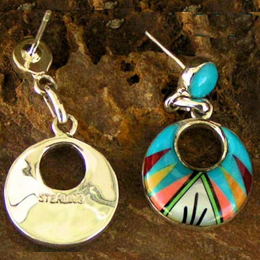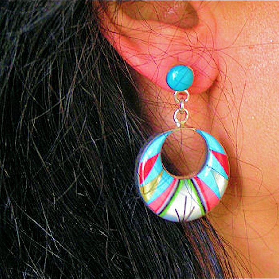 Boucles d'oreilles en Argent Sterling/925 mesurant 2 x 3.3 cm serties de pierres semi précieuses.
