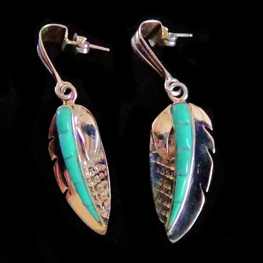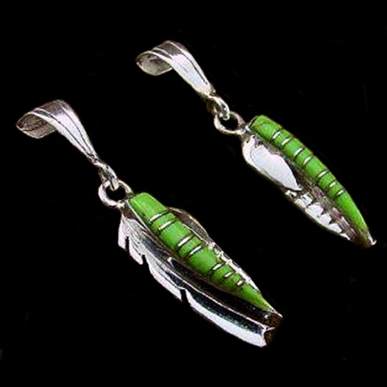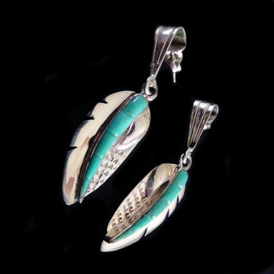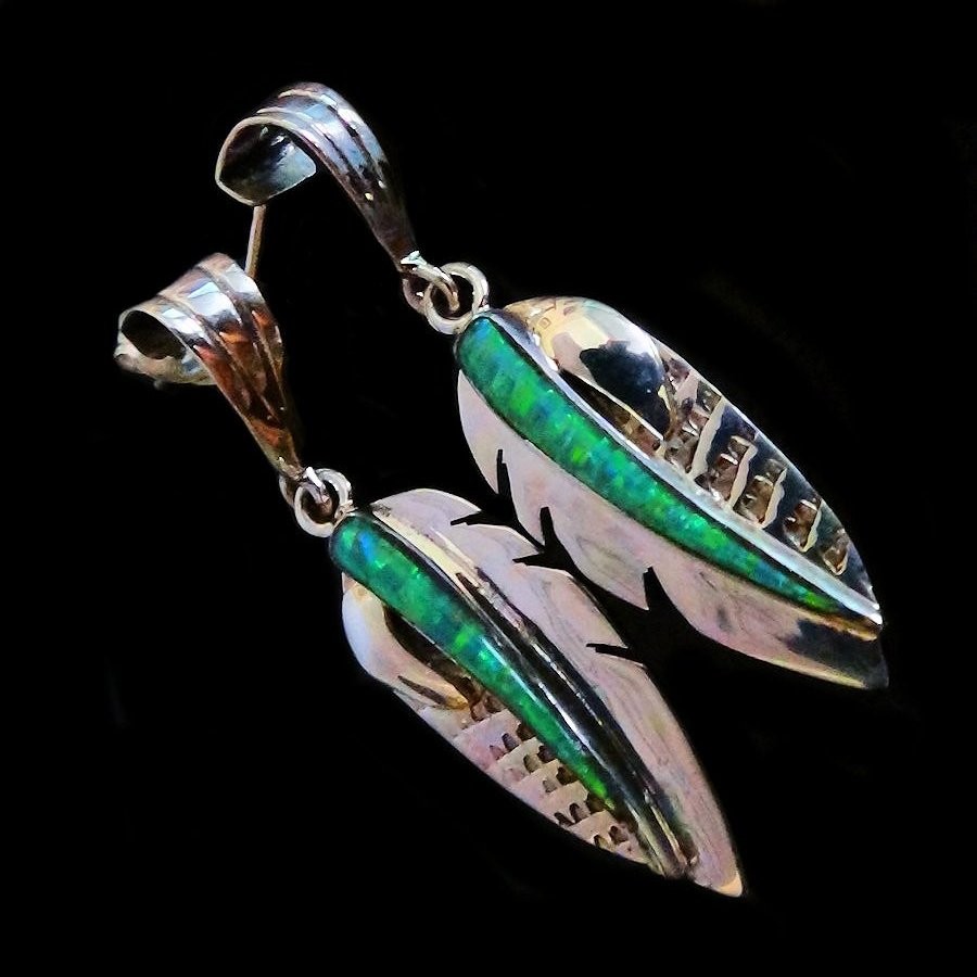 Boucles d'oreilles en Argent Sterling/925 ciselées en forme de plume, mesurant 3.2 x 1 cm et serties de pierres sem- précieuses ou d'opale au centre - Choisissez votre couleur de pierre lors de votre commande.