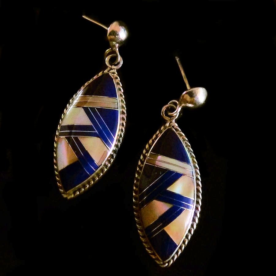 Boucles d'oreilles en Argent Sterling/925, sertie de Nacre et d'une autre pierre dont vous choisissez la couleur.