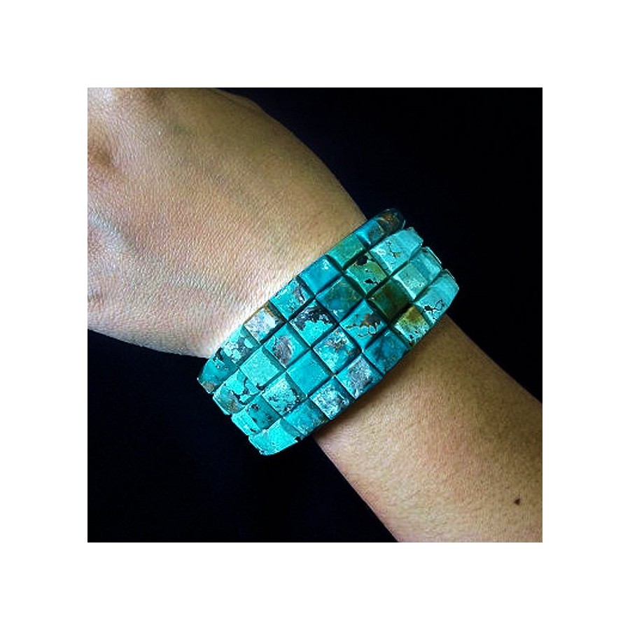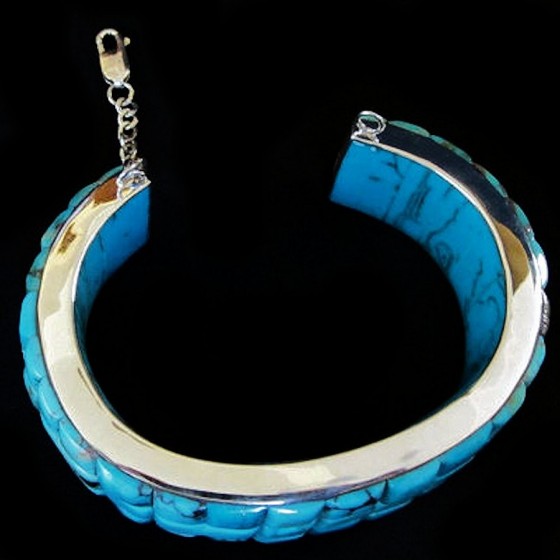 Bracelet en Argent Sterling/925, orné de turquoise ( Arizona ), à l'extérieur et à l'intérieur. Chaine de sûreté.