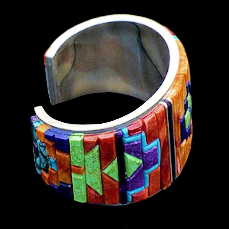 Bracelet en Argent Sterling/925 serti de pierres multicolore et représentant des symboles navajos.