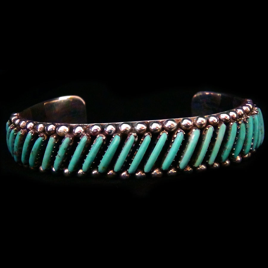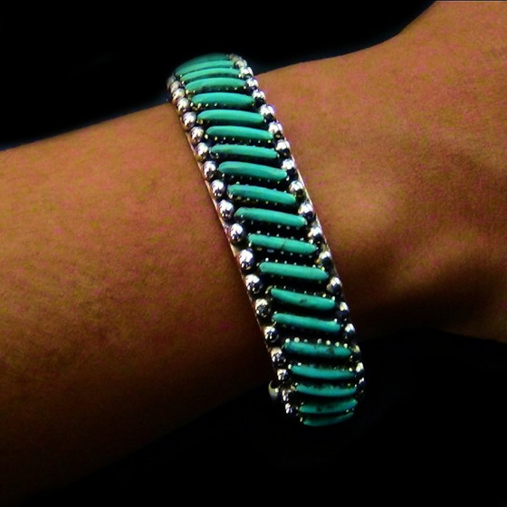 Bracelet en Argent Sterling 925 serti de turquoise finement taillée en Needlepoint. Vous pouvez choisir la couleur de pierre lors de votre commande.