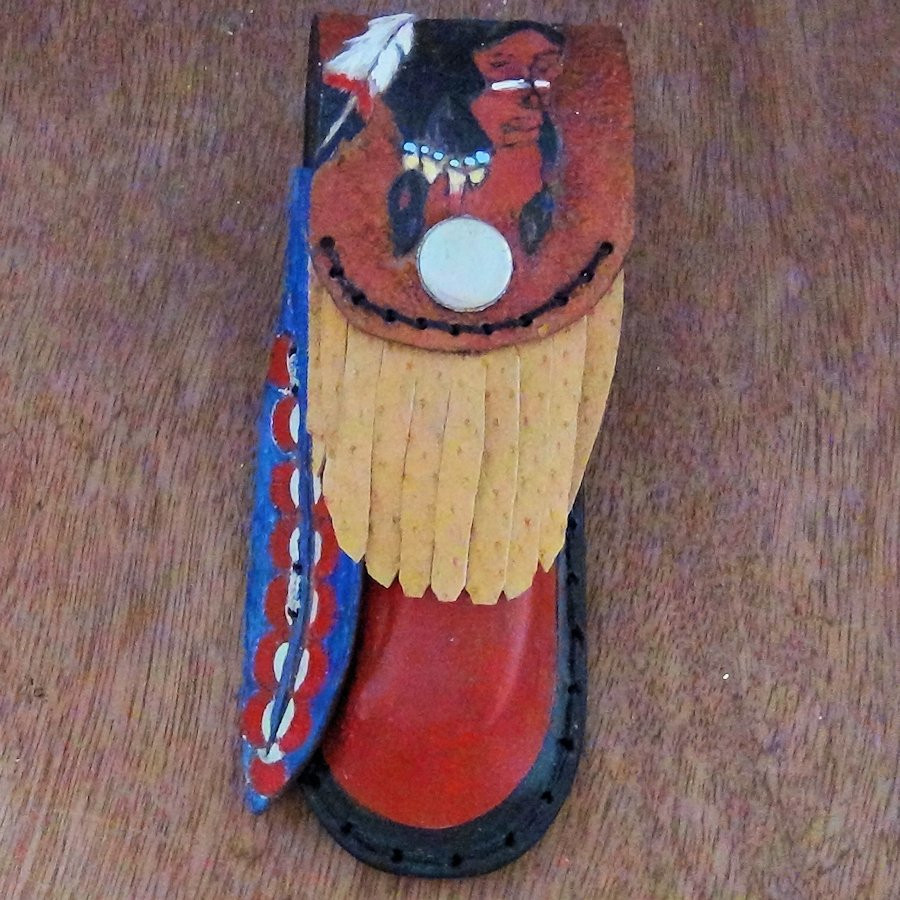 Etui pour Couteau Pliant en Cuir Repoussé Guerrier Indien
