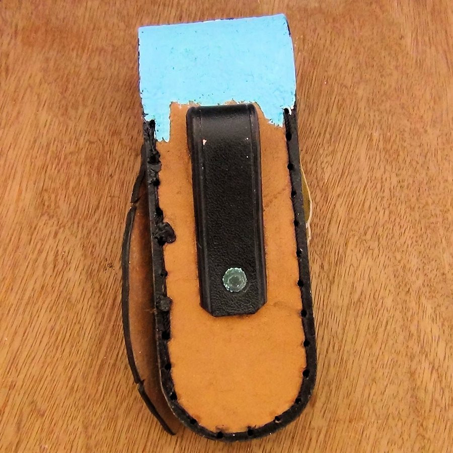 Etui en cuir repoussé et peint à la main pour couteau Modèle 1 de notre site.