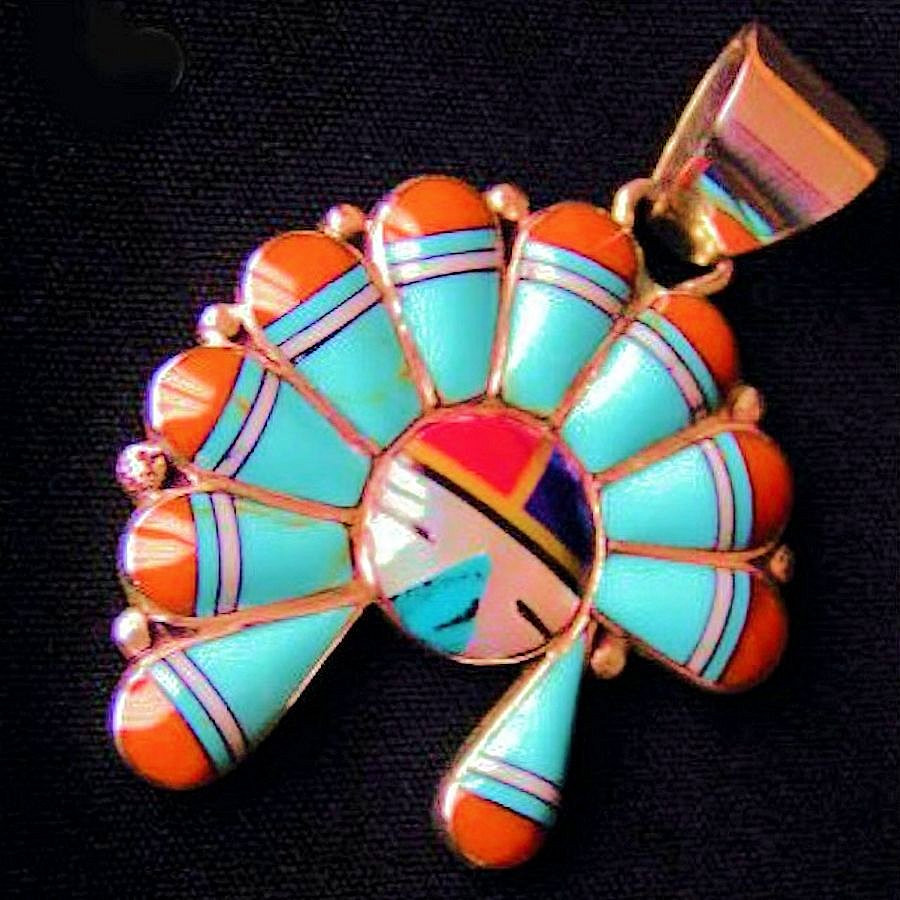 Pendentif en Argent Sterling/925, serti de turquoise et de spondylus.