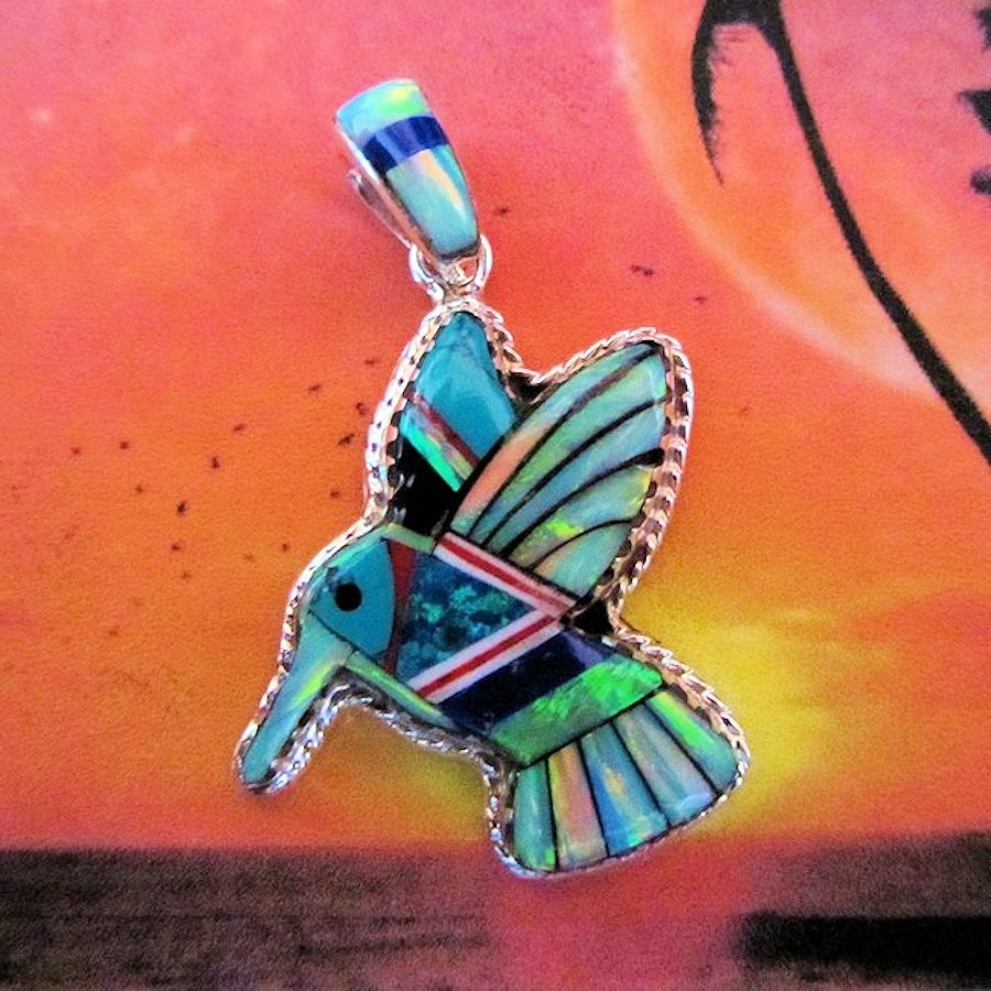 Pendentif en Argent Sterling/925 serti de pierres multicolores.