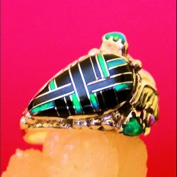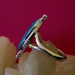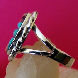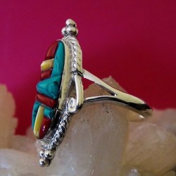 Bague en argent 925 pour Femme finement ciselée main et sertie de Nacre, Turquoise et Corail Style Overlay - Dimensions motif 3.6 x 1.8 cms environ - Poids 5 grammes.