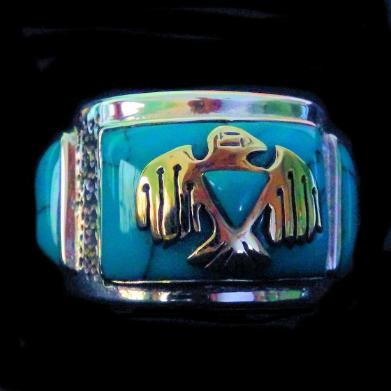 Ring in Sterling/925 zilver, gemengd, met een zilveren dondervogel op de voorkant. Kies uw achtergrondkleur.