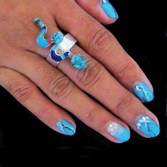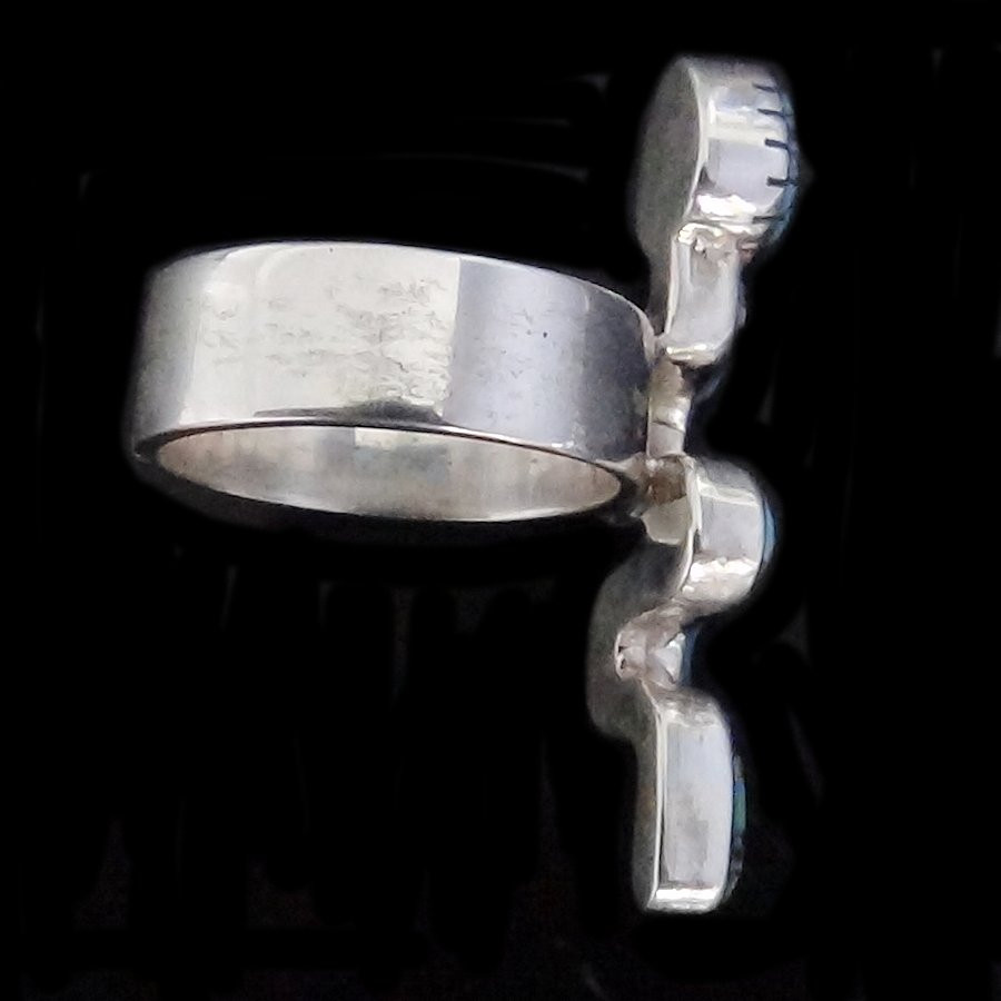 Damesring in Sterling/925 zilver, fijn met de hand gesneden en bezet met halfedelstenen.