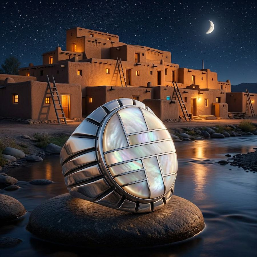 Deze ovale ring voor dames is vervaardigd van 925 sterling zilver en heeft een steen gezet tussen kleine zilveren bandjes. Dit ontwerp staat bekend als inlegwerk in de sieraden van de inheemse Amerikanen van het Amerikaanse Zuidwesten.