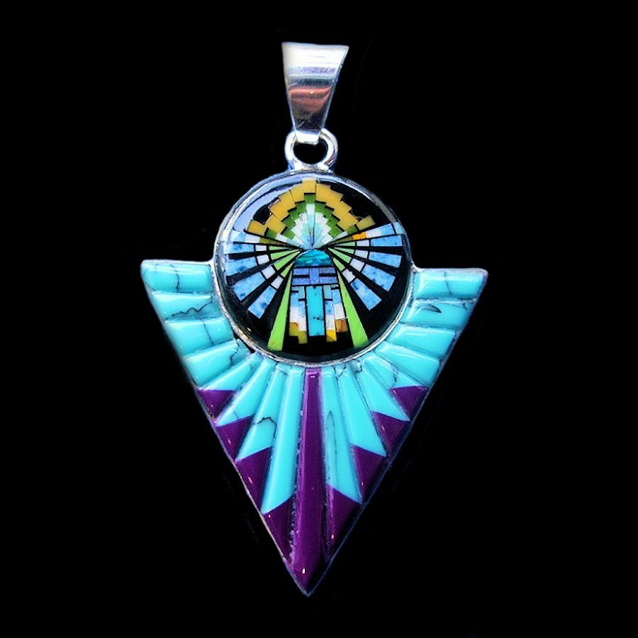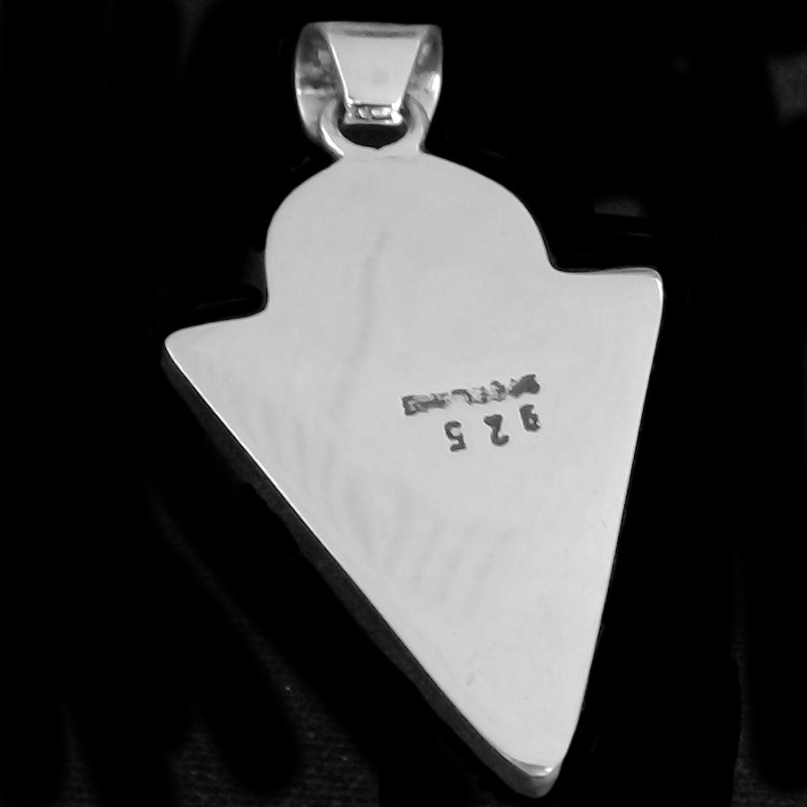 Hanger in Sterling Zilver/925 gebeiteld in de vorm van een pijlpunt met in het midden een kashina bestaande uit gezette stenen.