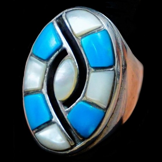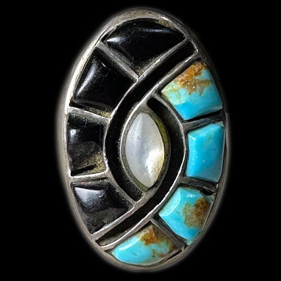 Sterling/925 zilveren ring bezet met een halfedelsteen, kleur naar keuze, die het Zuni-symbool van de kolibrie voorstelt.
