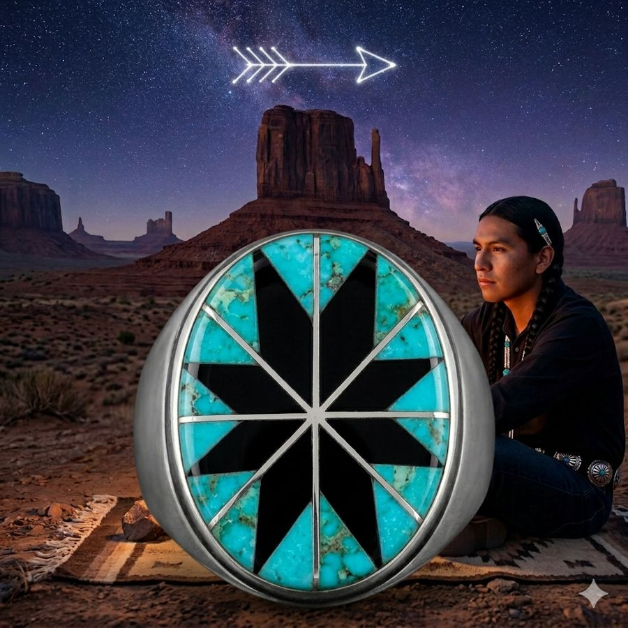 Bague Zuni Ovale Overlay en Argent 925, Etoile, Pour Homme