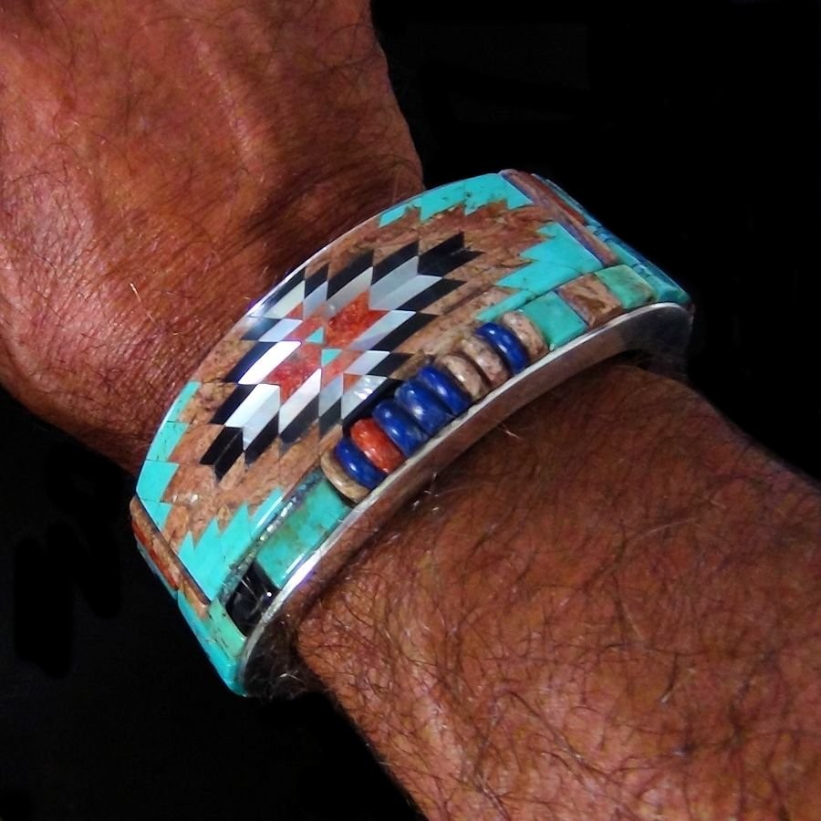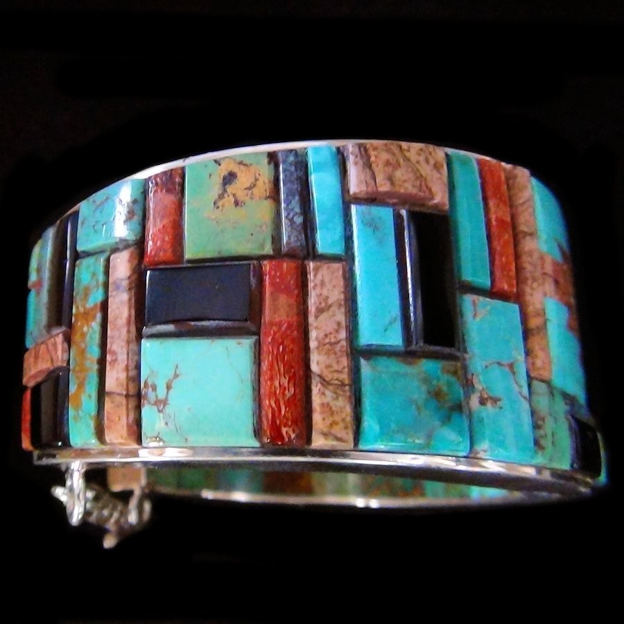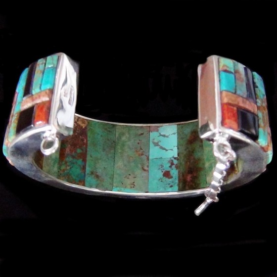 925 Zilveren armband, bezet met veelkleurige halfedelstenen.