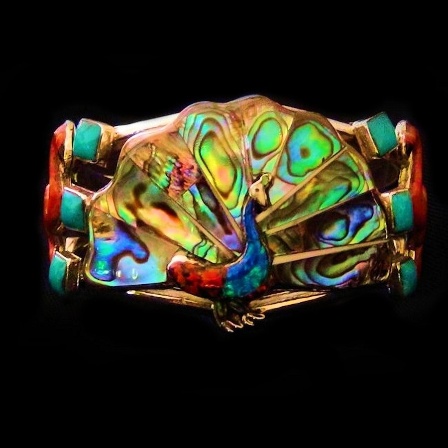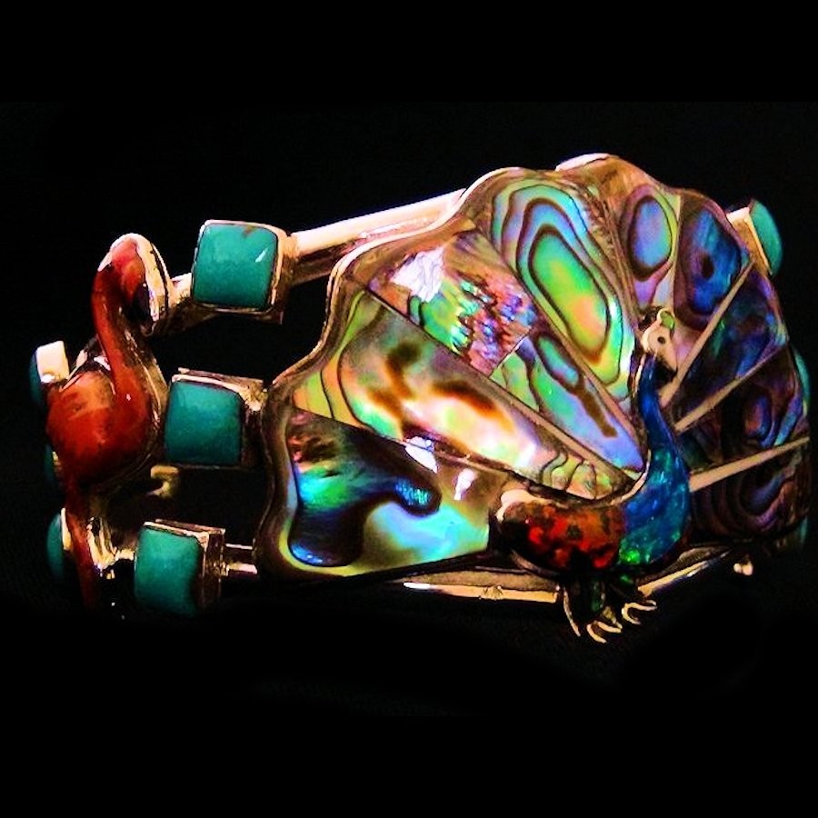 Sterling/925 Zilveren armband bezet met Opaal, Paua schelp, Doornroosje turkoois en koraalrood Breedte