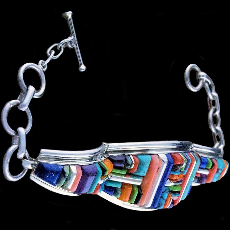 Sterling/925 Zilveren armband voor dames, bezet met halfedelstenen.